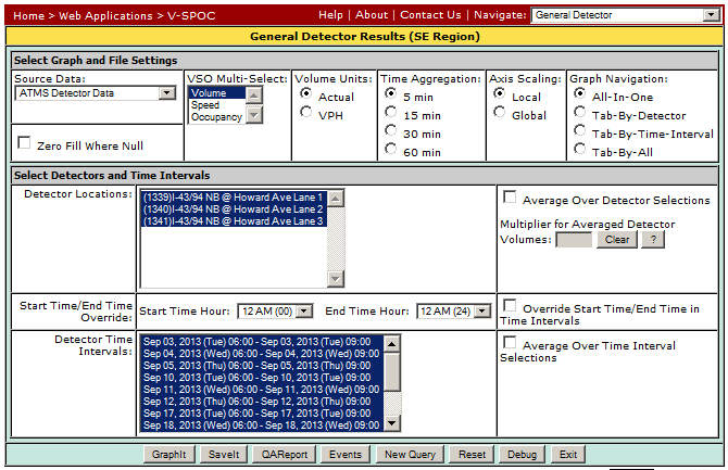 All data from these detectors from 1997 to present are archived in 5-minute bins by the Wisconsin TOPS Lab and made available via the WisTransPortal Volume, SPeed, and OCcupancy (V-SPOC) application. A summary of V-SPOC is here: WisTransPortal V-SPOC information.